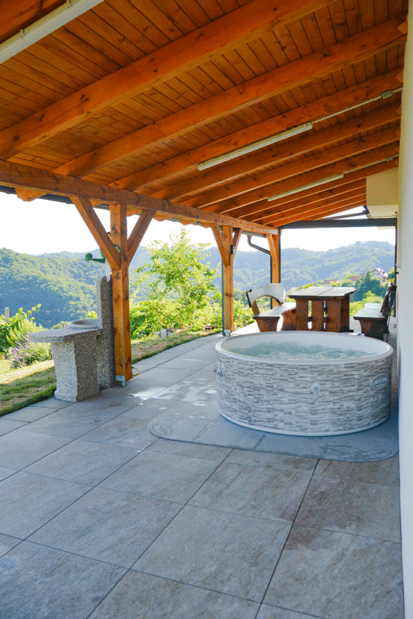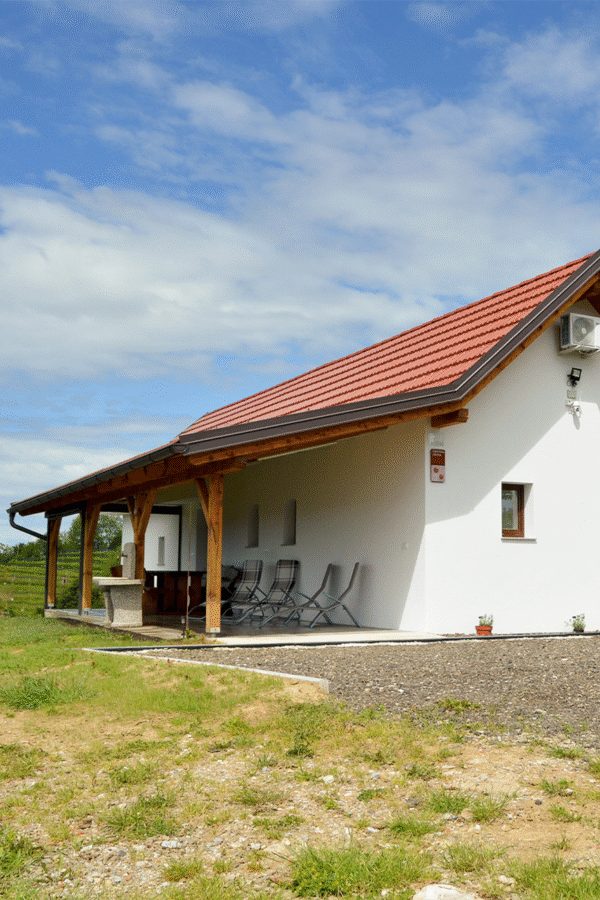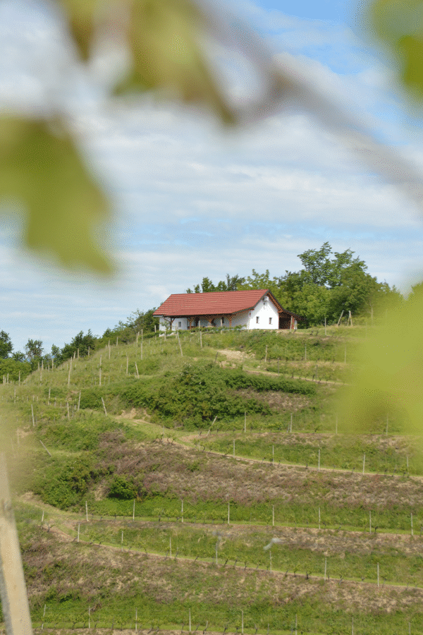 Pogled na haloške griče ustvarjajo intimen kotiček za popoln odklop. Gold Wine Estate združuje rustikalno toplino z modernim udobjem – sredi narave, med vinom in tišino.